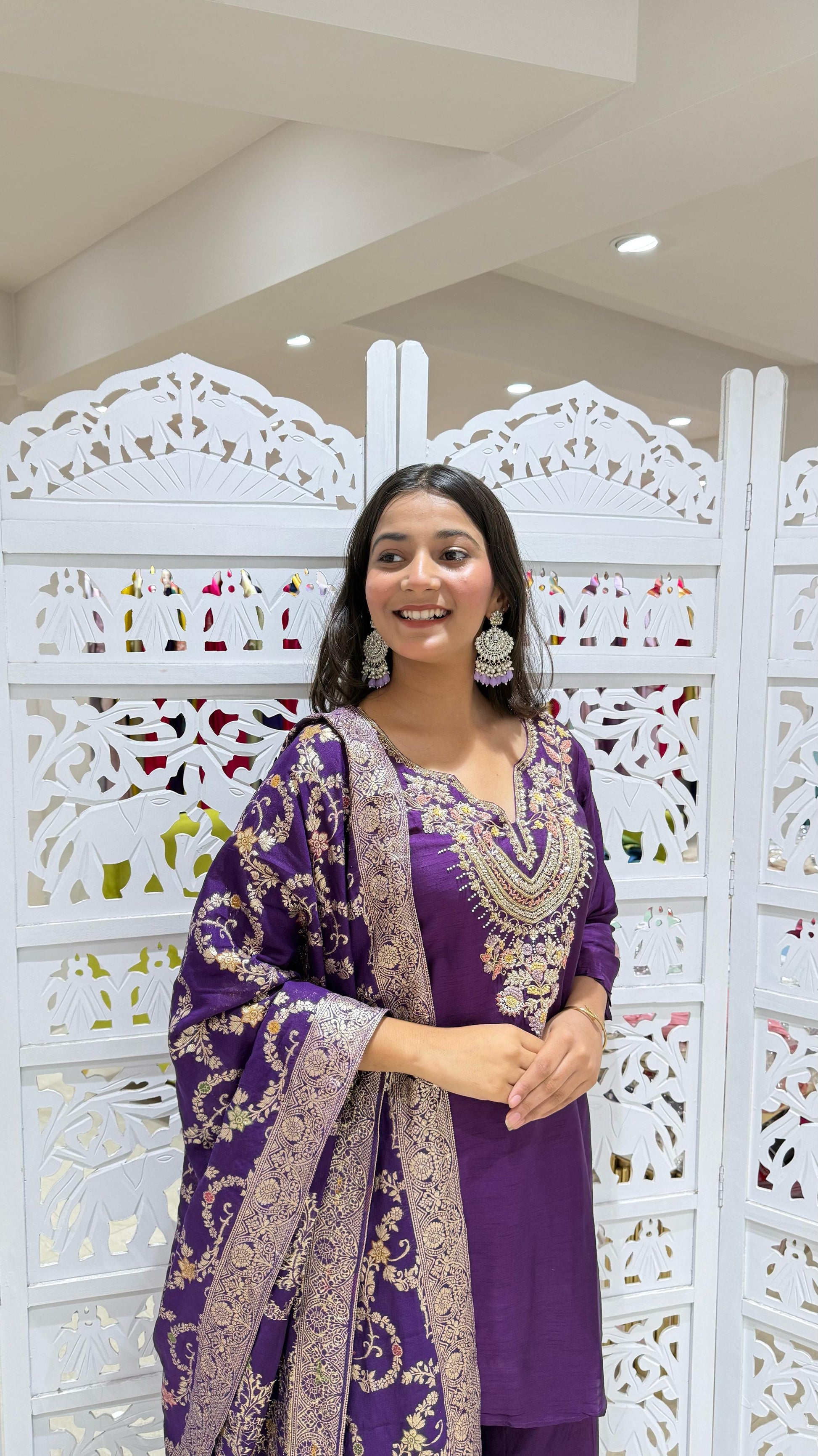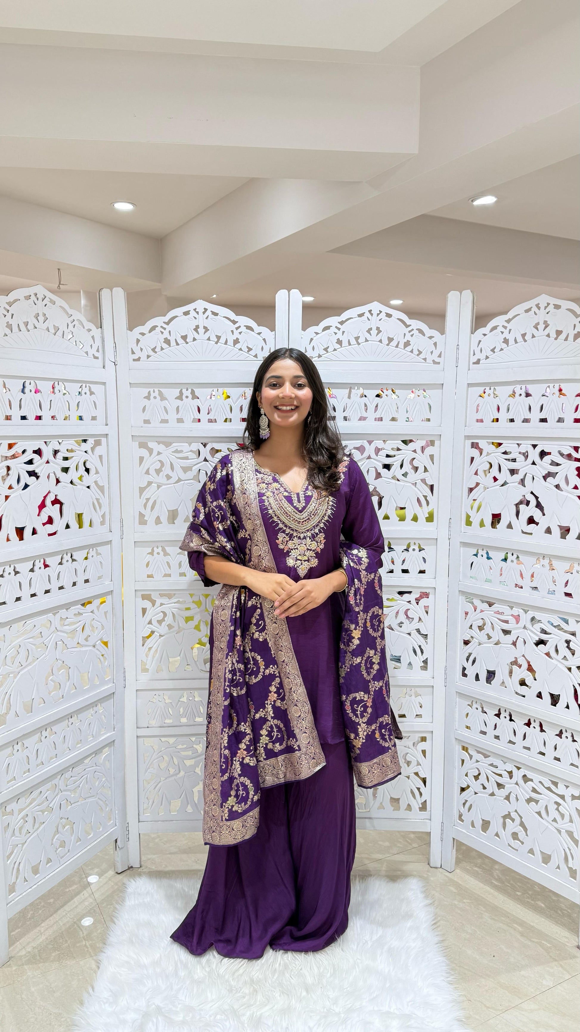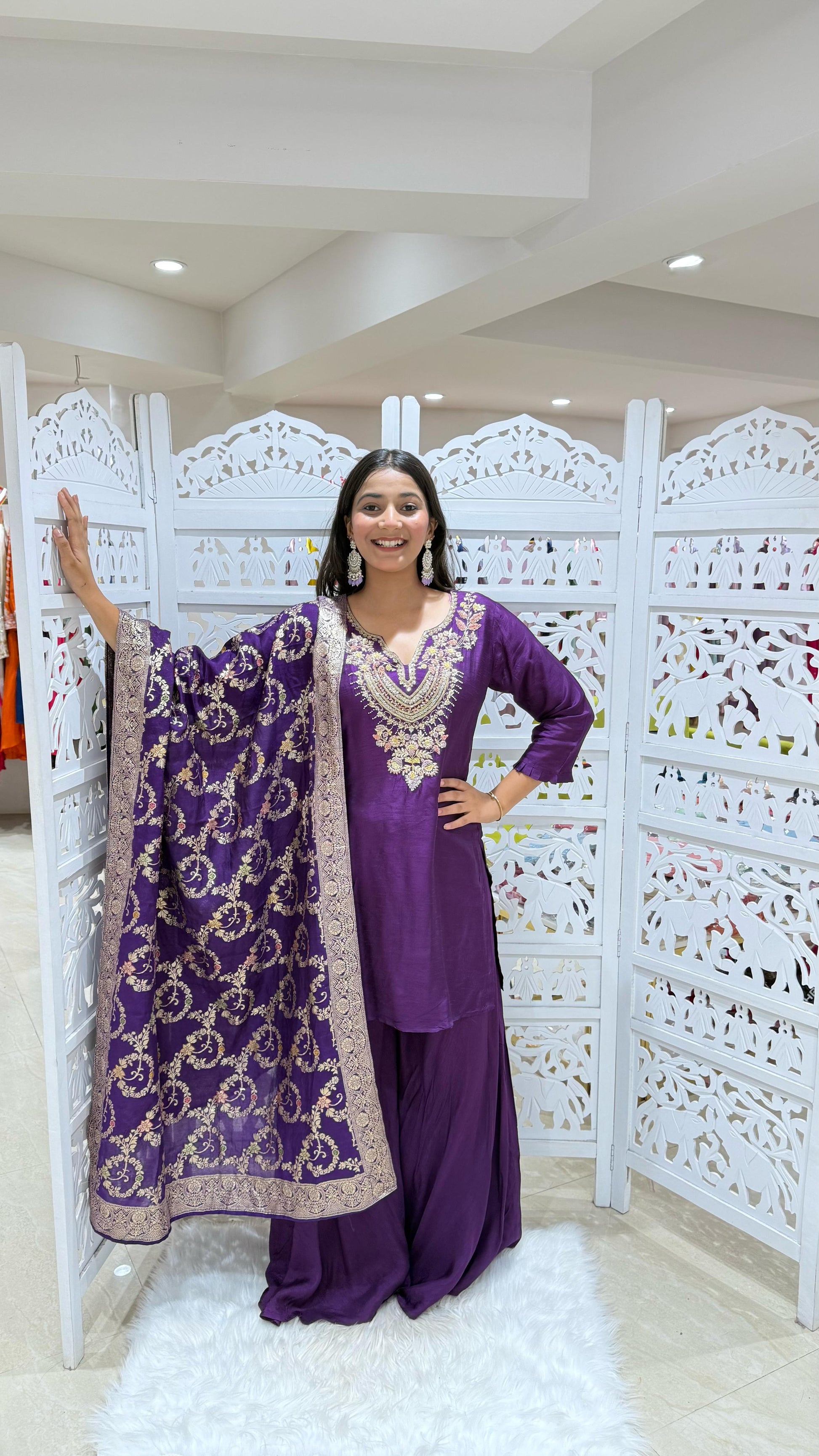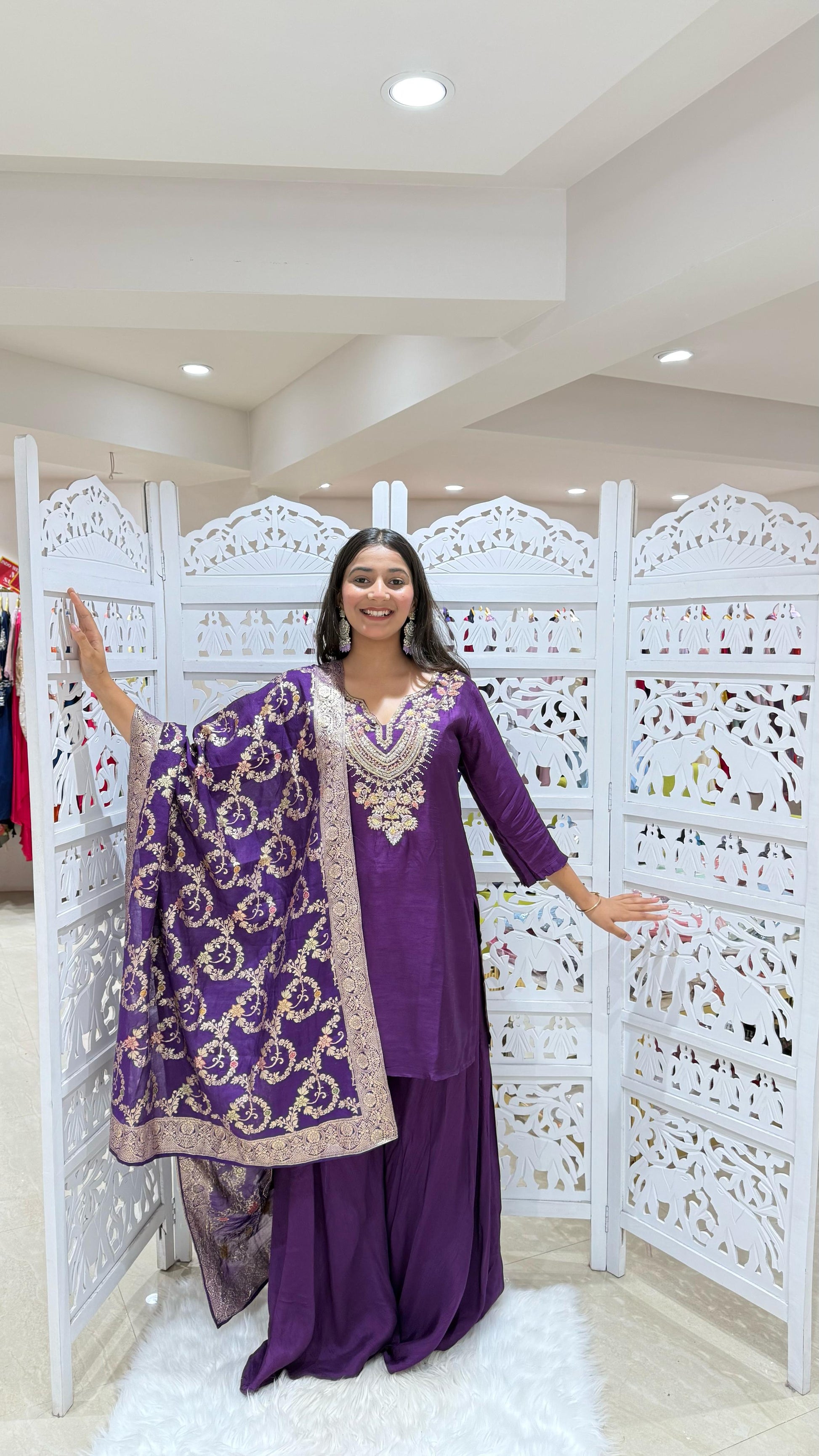 Kurti plazo with dupatta Threadwork kathdaana Sequence motiwork