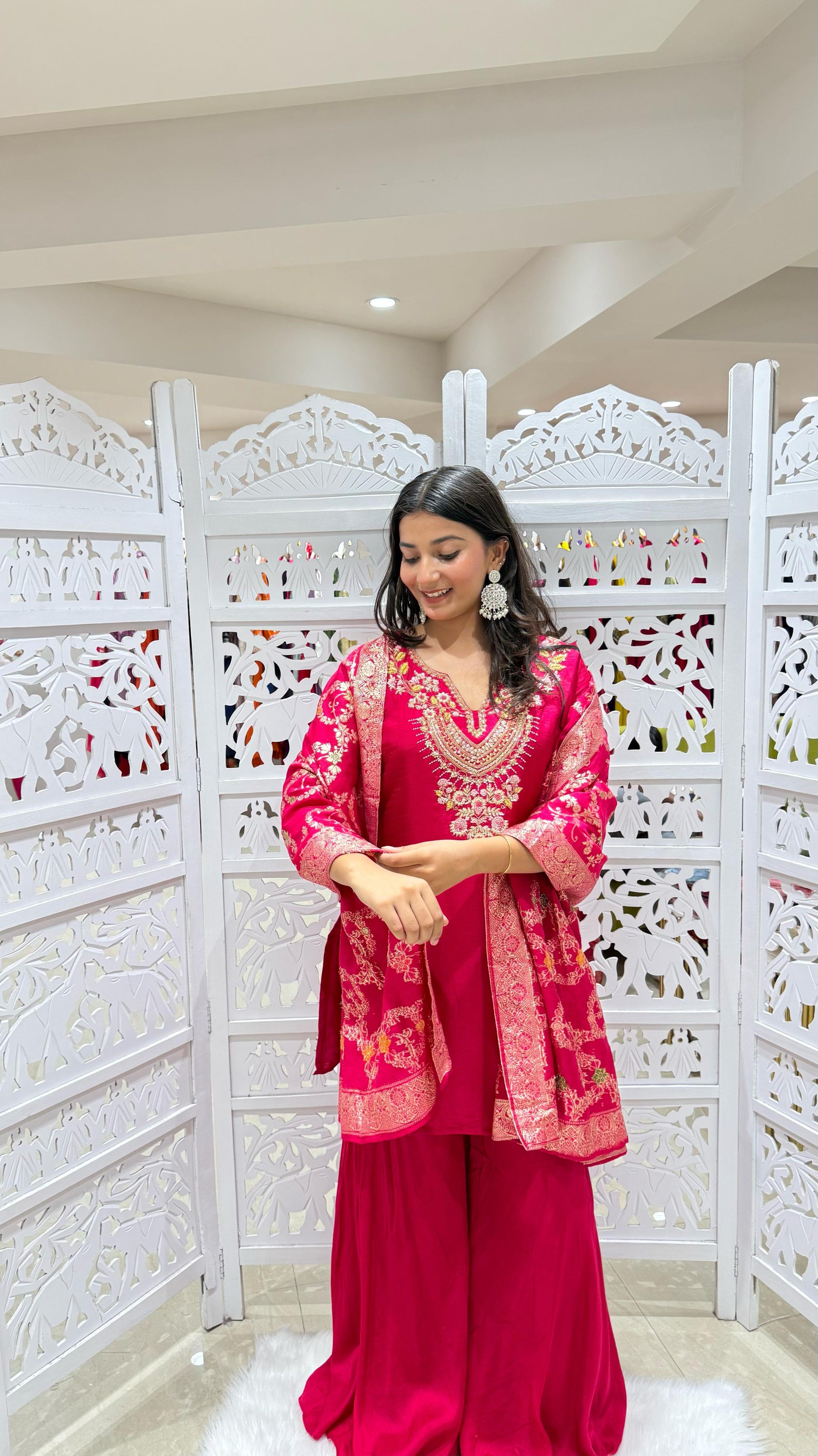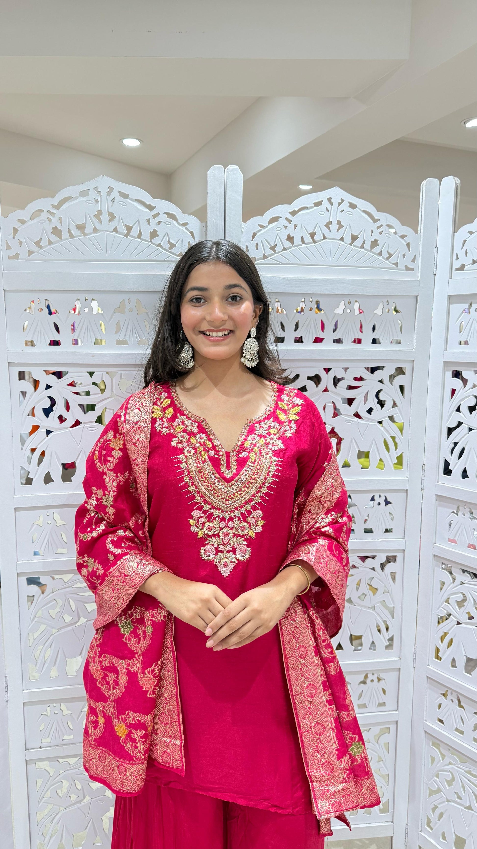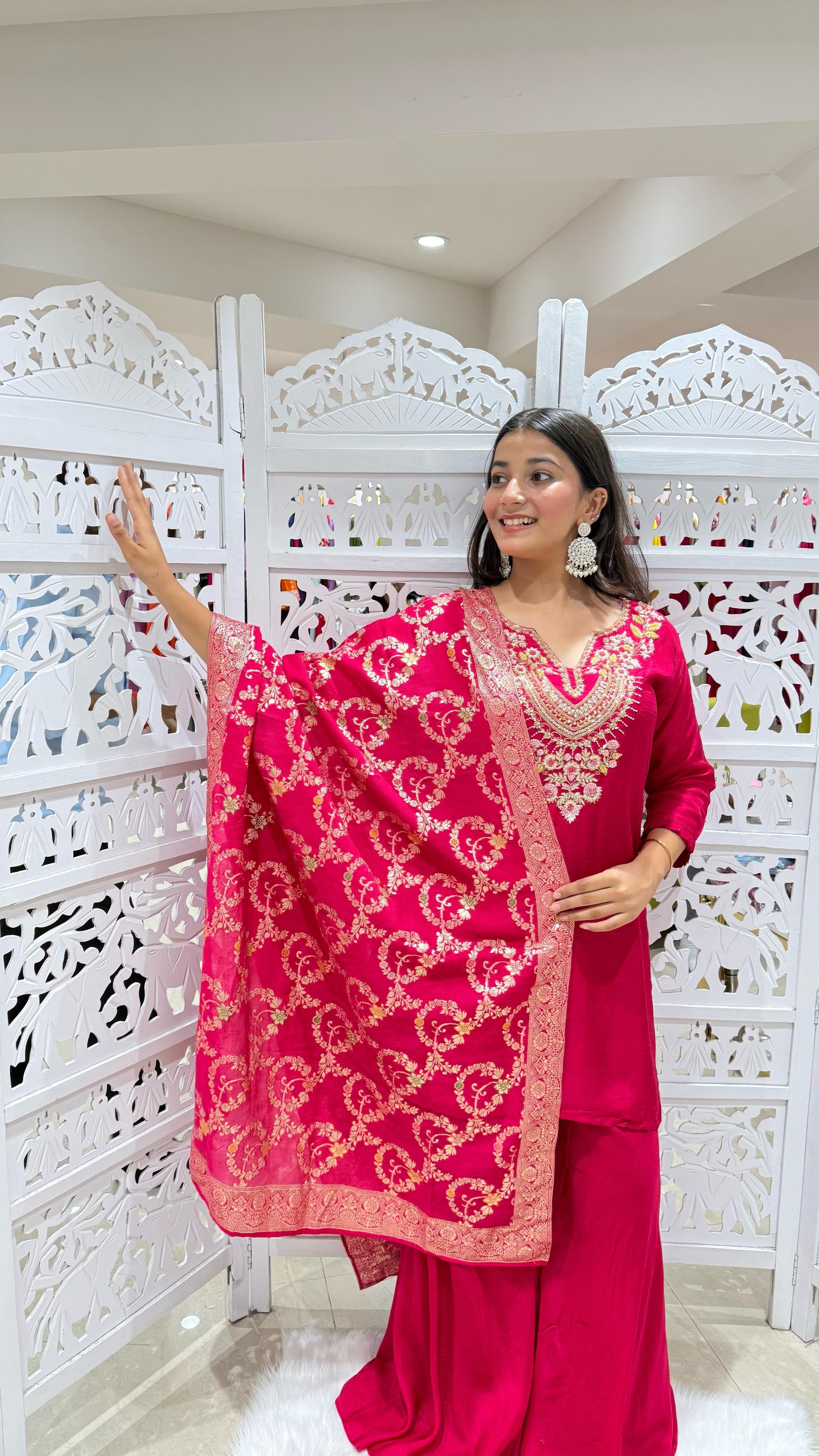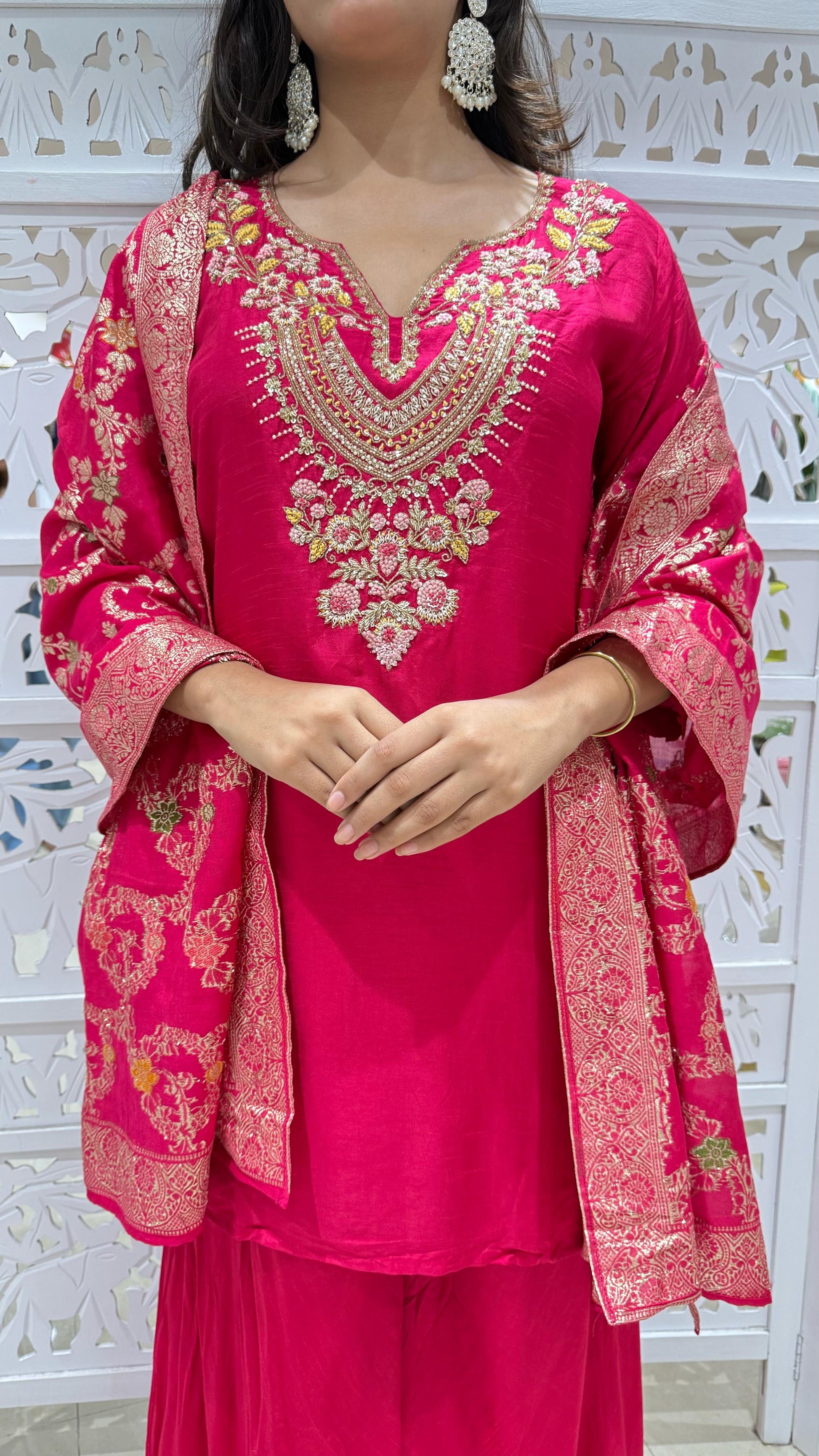 Kurti plazo with dupatta Threadwork kathdaana Sequence motiwork