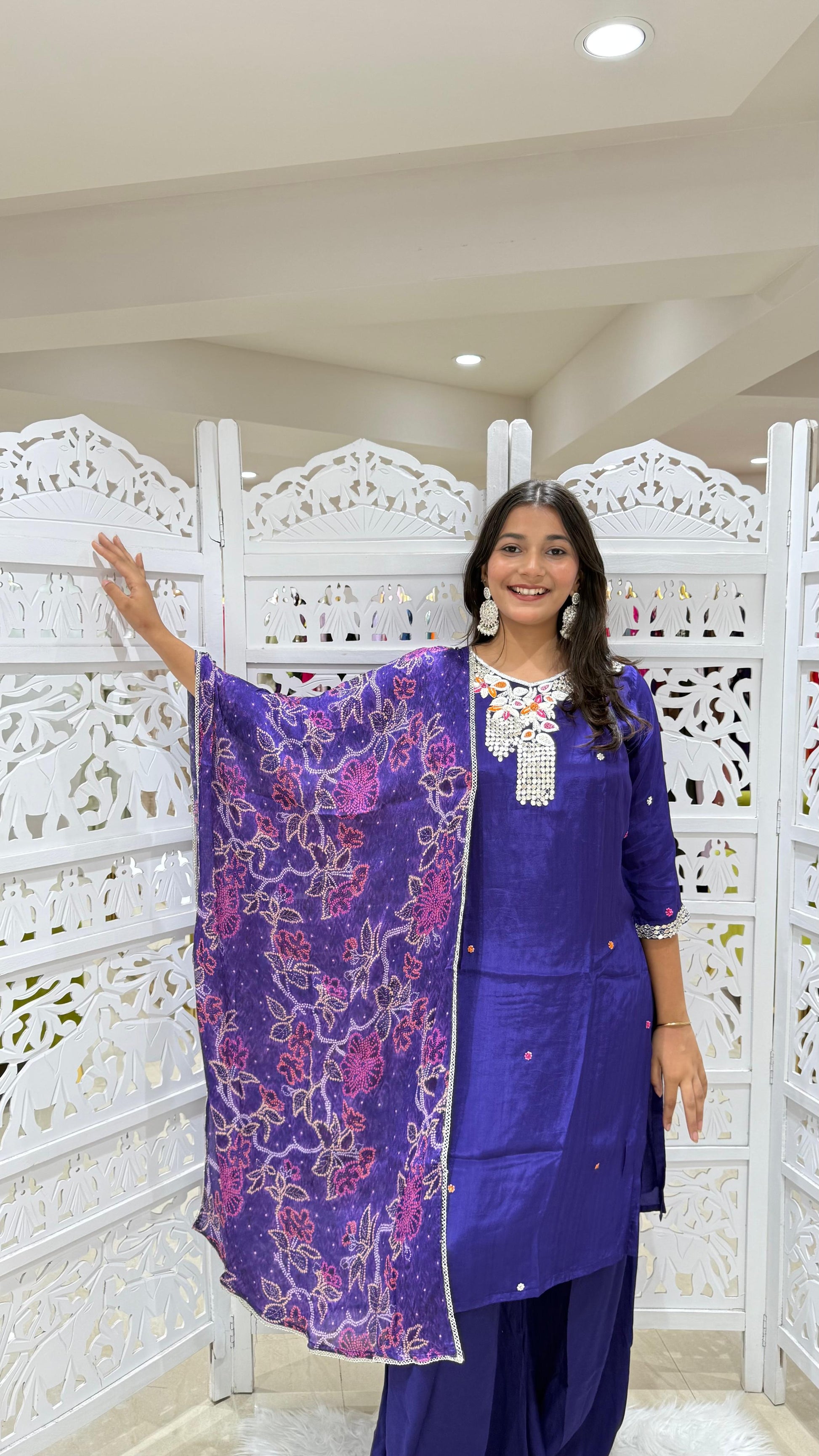 Kurti plazo with Duppata gotta pati threadwok Motiwork Sequence